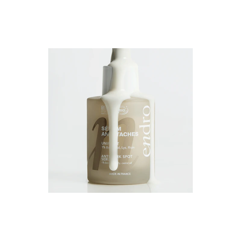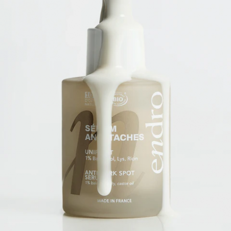 Engagé dans une démarche de cosmétique responsable, le Sérum Anti-Taches Endro est 100 % d’origine naturelle, formulé avec 72 % d’ingrédients issus de l’Agriculture Biologique et fabriqué en France. Il s’intègre parfaitement dans une routine de soin visant à corriger, prévenir et sublimer le teint en douceur.