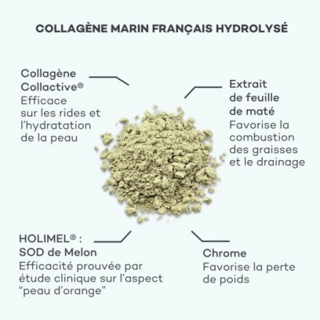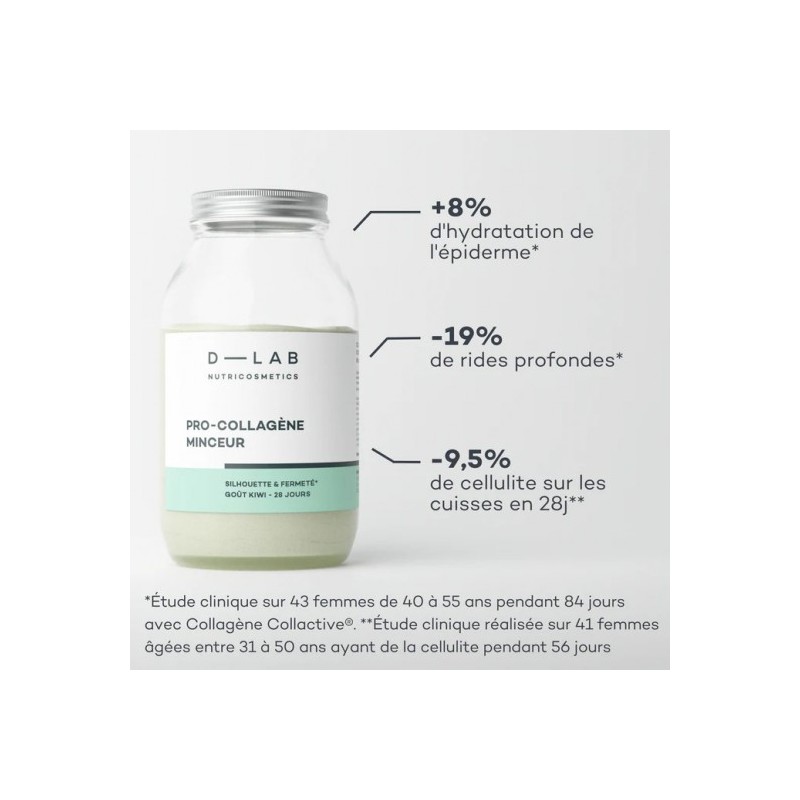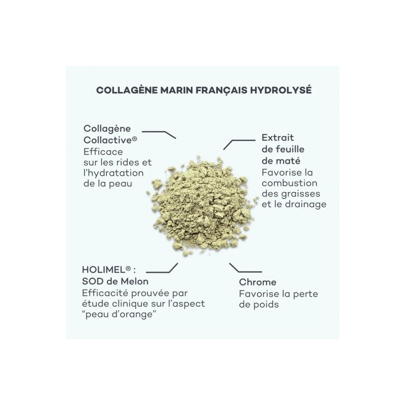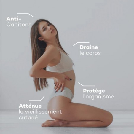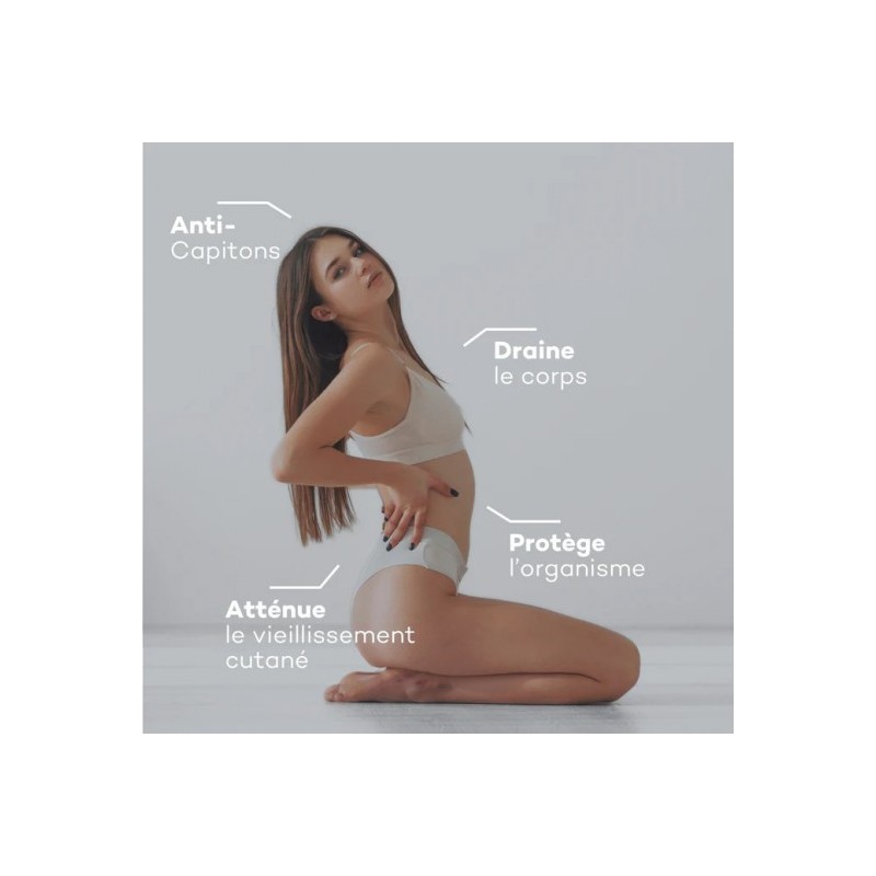 Pro-Collagène Minceur : agit sur la protection des tissus et le drainage, pour une silhouette plus tonique.