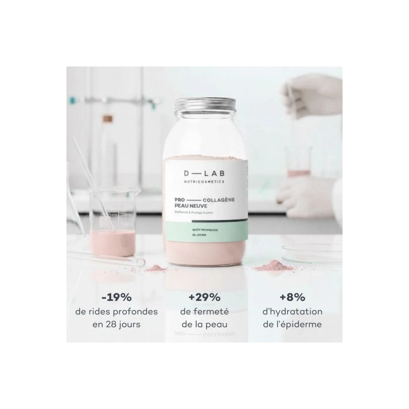 Formule experte anti-âge, le Pro-Collagène Peau Neuve associe Collactive® (collagène + élastine), acide hyaluronique HAPLEX® PLUS, vitamine C, zinc et extraits de fruits riches en polyphénols pour une peau plus ferme, lissée, protégée et intensément hydratée.