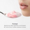 Oligopeptides de collagène 1,88 g et oligopeptides d’élastine 120 mg (poisson, mollusque, crustacé) • Fructo-oligosaccharides • Poudre de jus de framboise 1 g • Vitamine C issue d’acérola 235,3 mg (soit 40 mg de vitamine C – 50 % des AR) • Poudre de jus de grenade 200 mg • Acide hyaluronique HAPLEX® PLUS 150 mg • Gluconate de zinc (5 mg de zinc – 50 % des AR) • Arômes naturels • Glycosides de stéviol • Colorants alimentaires (betterave rouge, carotte).