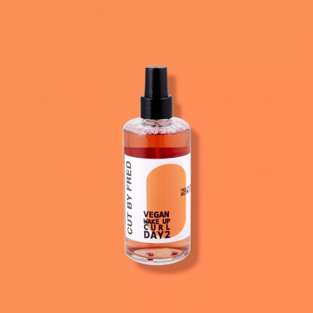 JOURS SUIVANTS LE SHAMPOING : Vaporiser le WAKE UP CURL DAY 2 sur cheveux secs ou humidifiés avec le PSCHIITT BY FRED, les jours suivants le shampoing, le matin, au réveil, ou à n’importe quel moment de la journée. Froisser les longueurs avec les mains en remontant. Laisser sécher.