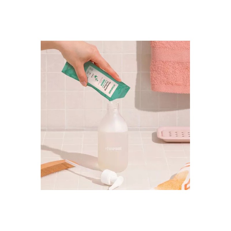 Ce kit contient 1 recharge de 30 g de poudre (30g de poudre + 225 mL d’eau = 250 mL de shampoing) + 1 bouteille rechargeable blanche 300mL.