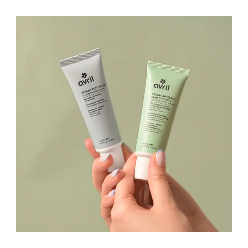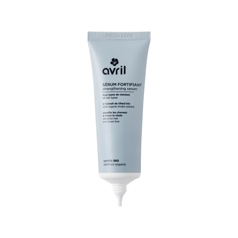 Le sérum fortifiant certifié bio Avril est le soin idéal pour redonner force et vitalité aux cheveux fragilisés ou en perte de densité. Sa formule d’origine naturelle, enrichie en extraits de tilleul bio*, capucine et cresson, agit directement au niveau du cuir chevelu pour stimuler la croissance, limiter la casse et renforcer la fibre capillaire. Sans rinçage, ce sérum pénètre facilement et laisse le cuir chevelu revitalisé, pour des cheveux plus épais et plus résistants jour après jour.