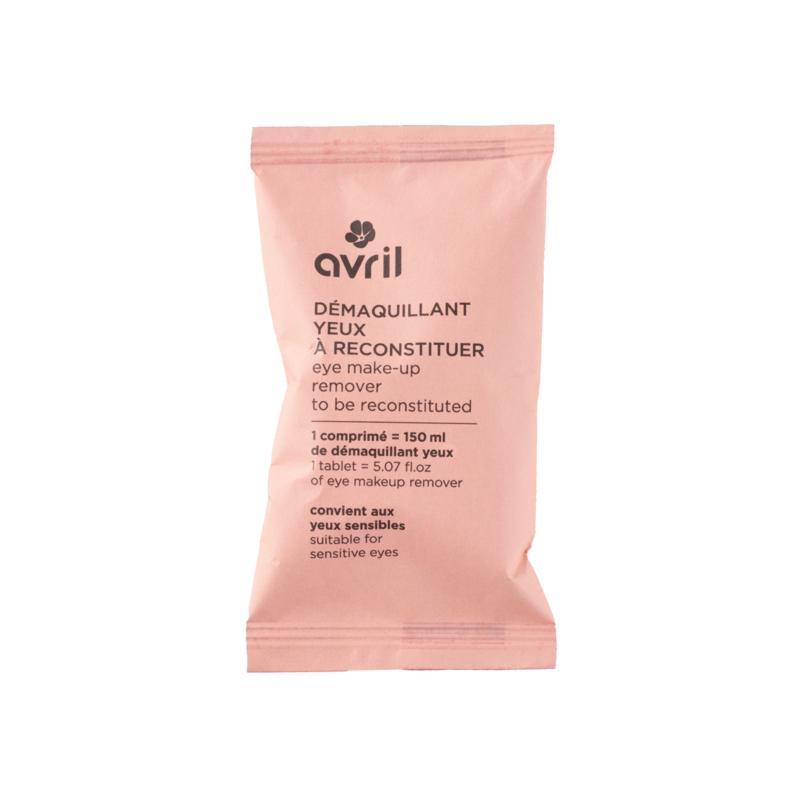 Zone application : YeuxContenance : 150 mlMode d'emploi : Ceci est une recharge. Elle ne peut être utilisée seule. Avant toute utilisation, munissez-vous de votre flacon rechargeable pour Démaquillant yeux Avril et ajoutez de l'eau chaude jusqu'au repère. Ajoutez ensuite le comprimé. Laissez le bouchon ouvert et attendez 12h. Refermez le bouchon puis secouez pour homogénéiser. Votre démaquillant yeux est prêt à l'emploi !Précautions d'emploi : Ne pas utiliser les bâtonnets directement sur la peau et rincer les mains après contact. Tenir hors de portée des enfants.En cas de contact avec les yeux, rincer abondamment à l’eau claire.Diluer les bâtonnets dans le flacon prévu à cet effet.Conserver à l’abri de la lumière, de l’humidité et de la chaleur, dans un endroit à température ambiante.VEGAN : OuiERYTHRITOL, MALTODEXTRIN*, CITRIC ACID, INULIN, COCAMIDOPROPYL BETAINE, SODIUM BICARBONATE, SODIUM GLUCONATE, ZEA MAYSSTARCH*, XANTHAN GUM, HYDROGENATED STARCH HYDROLYSATE, SODIUM BENZOATE, SODIUM DEHYDROACETATE, PARFUM (FRAGRANCE), SODIUMCHLORIDE, AQUA (WATER), ALOE BARBADENSIS LEAF JUICE POWDER *, ARGANIA SPINOSA (ARGAN) KERNEL OIL*, CALENDULA OFFICINALISFLOWER EXTRACTEt pour ceux qui n'ont pas pris latin au lycée, voici en français les ingrédients :Érythritol (Tétrahydroxybutane), Maltodextrine*, Acide citrique, Inuline (fructosane, polysaccharide de fructose), Cocamidopropyl bétaïne, Bicarbonate de sodium, Gluconate de sodium, Amidon de maïs*, Gomme xanthane, Hydrolysat d'amidon de maïs hydrogéné, Benzoate de sodium (sel de sodium l'acide benzoïque), Déhydroacétate de sodium, Parfum, Chlorure de sodium (sel), Eau, Jus de feuille d'aloès en poudre*, Huile d'argan*, Extrait de fleur de souci (calendula)* Ingrédients issus de l'agriculture biologiqueCertification BIO : Produit cosmétique certifié Cosmos Natural par Ecocert Greenlife99% du total des ingrédients sont issus de l’Agriculture Biologique.7% du total est d’origine naturelle.Lieu de fabrication : France