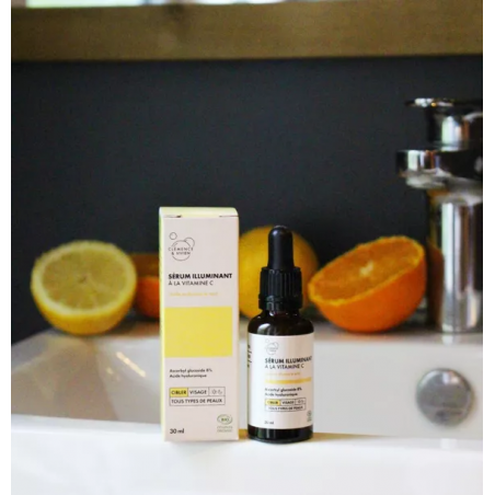 Notre Sérum illuminant à la vitamine C est un véritable booster d'énergie. Il recharge la peau en vitamine C et atténue les signes de fatigue. La peau est illuminée et les taches pigmentaires sont atténuées. Il donne un coup de fouet à votre peau. Celle-ci est en pleine forme : lumineuse, uniforme et lisse !