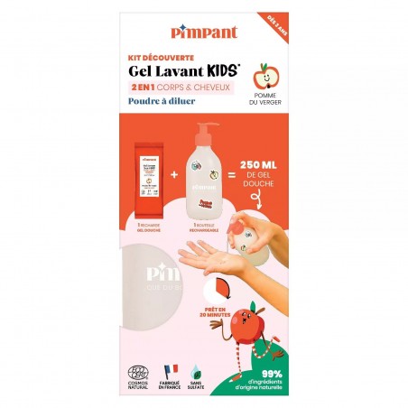 Kit découverte Gel lavant Kids 2 en 1 pomme du verger poudre à diluer (1 bouteille + 1 recharge)