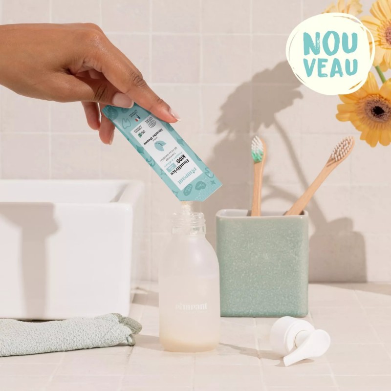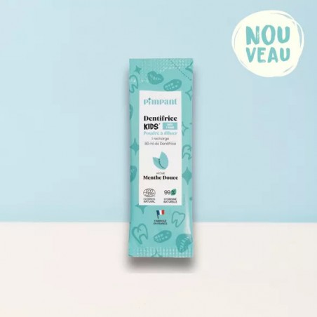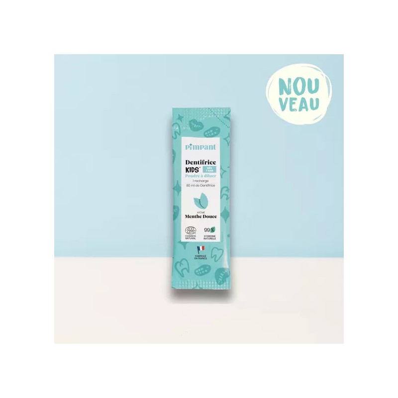 Conçu pour les enfants et adultes (dès 7 ans), notre Dentifrice Menthe Douce en poudre à diluer rejoint la famille du dentifrice kids à la fraise et transforme la routine d’hygiène dentaire en un geste malin et fun !