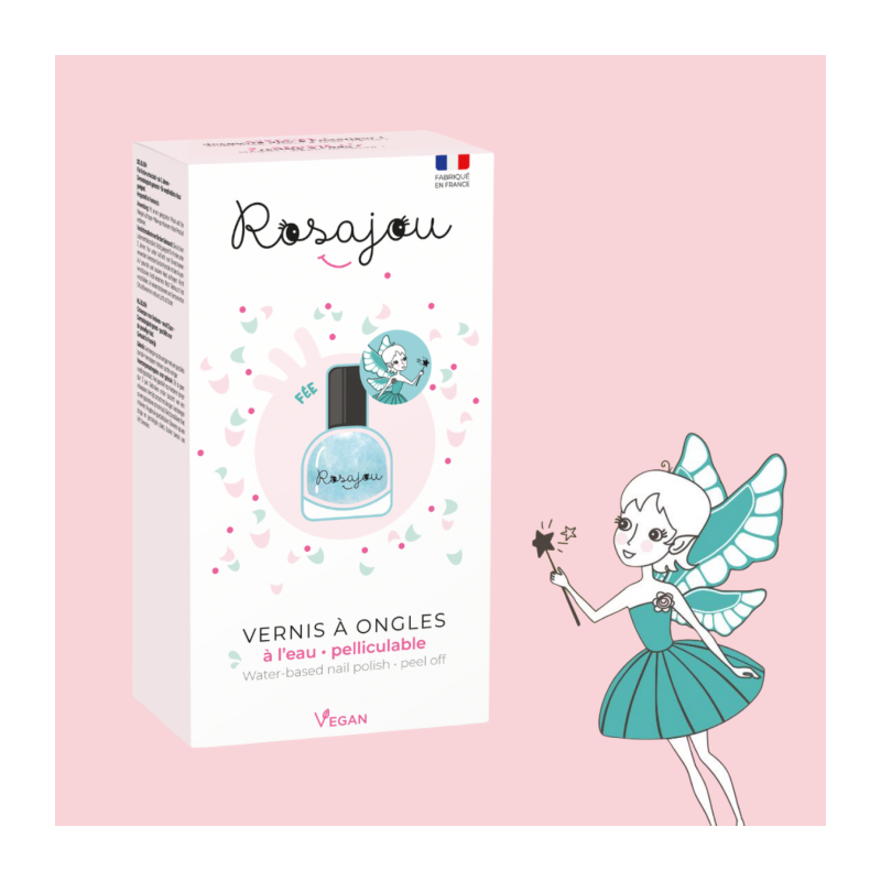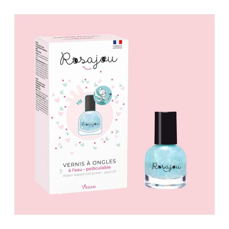 Vernis à ongles pour enfants – Bleu nacré « Fée » Formule vegan à base d’eau, sans solvant chimique. Flacon en verre – 5 ml Ce vernis bleu ciel scintillant est parfait pour créer des ongles féériques. Le vernis Fée peut être utilisé seul ou par-dessus un autre vernis pour le sublimer avec ses nacres. Essayez de l’appliquer sur le vernis Lavande ou Lagon pour un effet pailleté magique selon la lumière. Présenté dans un joli étui aux couleurs de la marque et accompagné d’une adorable planche de tatouages à l’encre de soja. Utilisation : Comment l’enlever : Précautions d’emploi : Ingrédients : Vernis à ongles Fée : Tatouages :