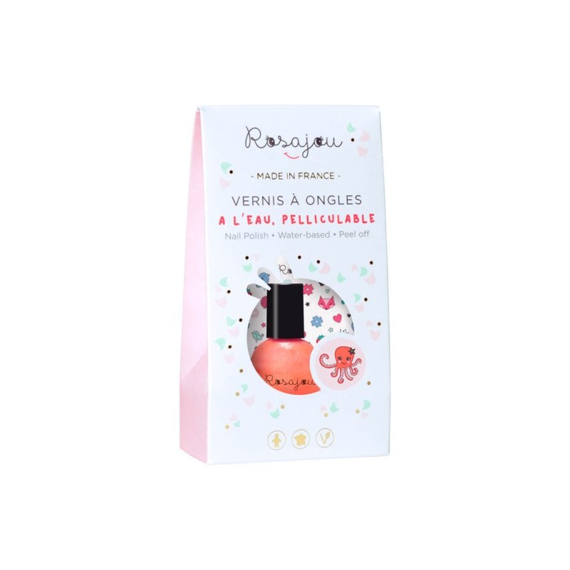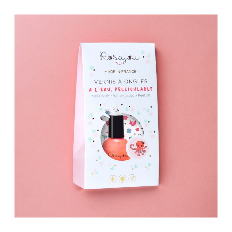 Vernis à ongles pour enfants – Corail nacré Formule vegan à base d’eau, sans solvant chimique. Flacon en verre – 5 ml Un vernis rose corail pailleté parfait pour les beaux jours. Résultat : un rose intense et lumineux qui colore joliment les petits ongles, avec un rendu couvrant dès la première couche. Ce vernis peut être utilisé seul ou appliqué sous un vernis plus clair afin de le sublimer avec ses nacres. Essayez de le combiner avec le vernis Fée pour un résultat lumineux qui rappelle l’esprit des vacances. Présenté dans un joli étui aux couleurs de la marque et accompagné d’une adorable planche de tatouages à l’encre de soja. Utilisation : Comment l’enlever : Précautions d’emploi : Ingrédients : Vernis à ongles Corail : Tatouages :