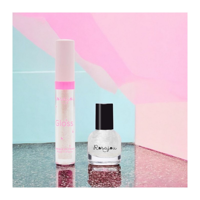 Le brillant à lèvres et le vernis à ongles Perle sont réunis dans un joli coffret cartonné.