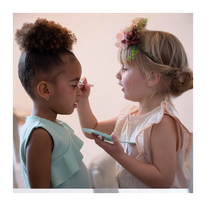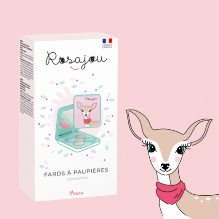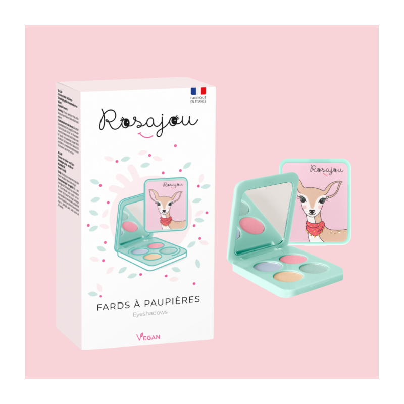 Fards à paupières – 4 couleurs Formule vegan à base de talc micronisé et de nacres minérales. Testés sous contrôle dermatologique. Contenance : 4 × 1,5 g Palette composée de 4 fards à paupières : rose, doré, bleu et vert. Pour rehausser le regard et créer de jolis yeux de biche. Application très facile grâce au pinceau pour les yeux. Un vrai jeu d’enfant. Utilisation : Démaquillage : Précautions d’emploi : Ingrédients : Bleu / Blue 12746 : Vert / Green 12748 : Doré / Golden 12747 : Rose / Pink 12749 : * Ingrédients issus de l’agriculture biologique / ingredients from organic farming. 99,5 % d’ingrédients d’origine naturelle