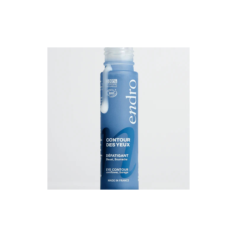 Offrez à votre regard un soin expert avec le Contour des Yeux Endro, spécialement formulé pour atténuer les cernes, les poches et les rides visibles. Ce soin précis agit en douceur sur la zone fragile du contour de l’œil pour révéler un regard plus frais, reposé et lumineux jour après jour. Sa formule 100 % d’origine naturelle, certifiée biologique, repose sur une synergie d’actifs reconnus pour leur efficacité. L’hydrolat de bleuet, aux propriétés apaisantes et décongestionnantes, aide à réduire visiblement les signes de fatigue, les poches et les cernes. L’huile de bourrache, riche en acides gras essentiels, nourrit intensément la peau fine du contour de l’œil et améliore sa souplesse et son élasticité. L’extrait de gentiane jaune complète cette action en contribuant à lisser la peau et à atténuer les marques du temps, tandis que l’aloe vera hydrate, apaise et renforce la barrière cutanée. Sa texture légère, formulée sans parfum ajouté, est parfaitement adaptée aux peaux sensibles. Le roll-on facilite une application précise et hygiénique, tout en procurant un effet frais et décongestionnant immédiat. Imaginé et fabriqué en France, ce soin répond aux exigences d’une cosmétique responsable, alliant naturalité, efficacité et respect de la peau. Le Contour des Yeux Endro s’intègre parfaitement dans une routine anti-âge douce et efficace pour un regard visiblement revitalisé et éclatant de santé. Réduit visiblement cernes, poches et rides Apaise et décongestionne le contour de l’œil Nourrit et améliore l’élasticité de la peau Texture légère, sans parfum ajouté Application facile et précise grâce au roll-on Convient aux peaux sensibles Formule 100 % d’origine naturelle Certifiée bio Fabriquée en France Appliquer le Contour des Yeux Endro matin et/ou soir sur la partie inférieure puis supérieure du contour de l’œil à l’aide du roll-on. Tapoter délicatement du bout des doigts jusqu’à absorption complète. Éviter le contact direct avec l’œil, les lèvres et les muqueuses. Usage externe uniquement, ne pas ingérer. En cas de contact avec les yeux, rincer abondamment à l’eau claire. Tenir hors de portée des enfants. Hydrolat de bleuet : reconnu pour ses propriétés apaisantes et décongestionnantes, il aide à réduire les cernes, les poches et les signes de fatigue. Huile de bourrache : riche en acides gras essentiels, elle améliore la souplesse et l’élasticité de la peau tout en lui apportant confort et vitalité. Extrait de gentiane jaune : connu pour ses effets lissants, il atténue visiblement les cernes et les poches pour un regard plus frais et lumineux. Aloe vera : hydratant naturel, il apaise et protège la peau fragile du contour des yeux en renforçant la barrière cutanée. AQUA (WATER / EAU), CENTAUREA CYANUS FLOWER WATER*, GLYCERIN, COCO-CAPRYLATE/CAPRATE, BORAGO OFFICINALIS SEED OIL*, PENTYLENE GLYCOL, ARACHIDYL ALCOHOL, BEHENYL ALCOHOL, SODIUM LEVULINATE, ARACHIDYL GLUCOSIDE, PROPANEDIOL, KAOLIN, SODIUM ANISATE, LACTIC ACID, ACACIA SENEGAL GUM, ALOE BARBADENSIS LEAF JUICE POWDER*, LEUCONOSTOC/RADISH ROOT FERMENT FILTRATE, SODIUM STEAROYL GLUTAMATE, XANTHAN GUM, TOCOPHEROL, GENTIANA LUTEA ROOT EXTRACT* * Ingrédients issus de l’Agriculture BiologiqueContour des Yeux – Endro