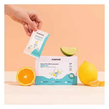 Sa synergie d’acide citrique, de bicarbonate et de carbonate de sodium élimine le calcaire, capte les mauvaises odeurs et fait briller la cuvette.