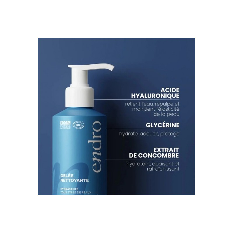 La gelée nettoyante hydratante est un soin visage double action conçu pour nettoyer la peau en douceur tout en lui apportant une hydratation immédiate. Grâce à sa texture fraîche et fondante, elle élimine les impuretés sans agresser ni dessécher, offrant une peau propre, souple et confortable dès la première utilisation. Elle convient à toutes les peaux, y compris les peaux sensibles.