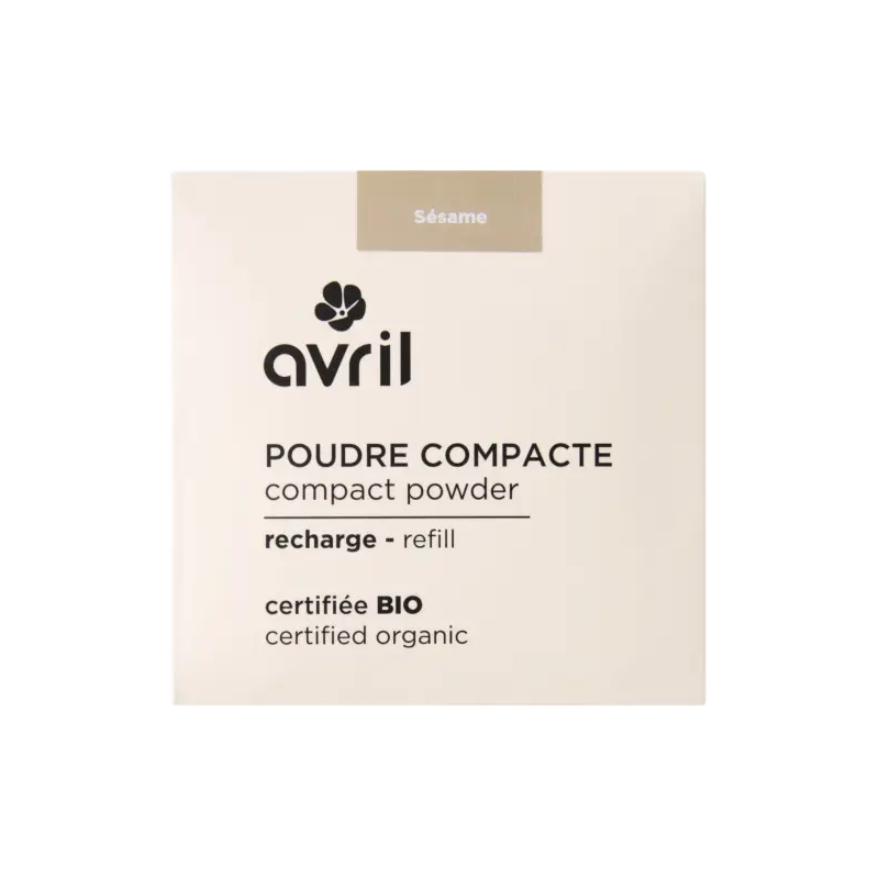 La poudre compacte Sésame certifiée bio Avril unifie et matifie votre teint grâce à sa texture douce et soyeuse. Elle s'aimante sur une palette ou un boîtier à se procurer séparément.