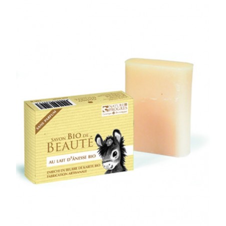 Les bienfaits du lait d'ânesse sont associés à ceux du beurre de Karité bio actif très hydratant, à travers cette savonnette de 100g, conforme au cahier des charges de cosmétique bio-écologique Nature & progrès, et fabriquée artisanalement.