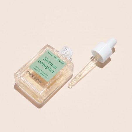 La texture aqueuse sans fini gras du Sérum Complet s'applique en léger massage sur ongles nus pour une cure d'hydratation profonde ou sur cuticules et ongles manucurés pour un soin nourrissant au quotidien.