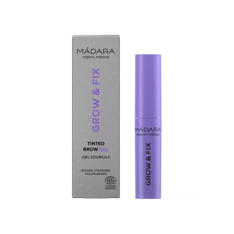 Le gel teinté Grow & Fix Mádara discipline, fixe et intensifie les sourcils en un geste. Disponible en 3 teintes, il allie maquillage et soin grâce à ses peptides, vitamines et pigments naturels pour des sourcils plus fournis, renforcés et naturellement colorés. ?? 99 % d’ingrédients d’origine naturelle.