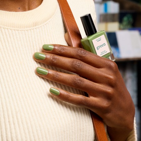 Une gamme de vernis à ongles bio-sourcée à 84% pour des manucures sans modération.Un vert clair olive. Un vert olive, indispensable pour flâner dans le plus emblématique des jardins parisiens. Couvrance : Opaque
