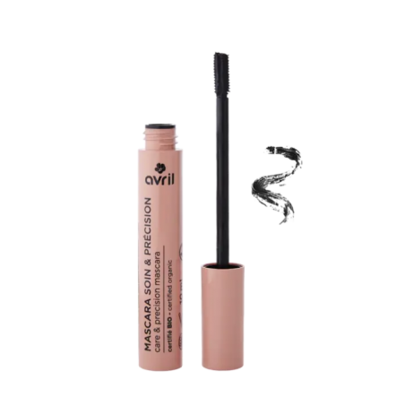 Le mascara Soin & Précision Avril sublime vos cils tout en leur apportant un véritable soin. Sa formule enrichie en actifs fortifiants nourrit, protège et favorise la pousse des cils au fil des applications. Idéal pour les cils courts ou fins, il offre un résultat naturel, sans paquets, et une tenue longue durée. Sa brosse fine et précise permet une application homogène, cil à cil, pour un regard défini et lumineux. Nourrit et fortifie les cils grâce à l’huile de ricin bio et au biotinoyl tripeptide-1 Favorise la pousse naturelle des cils Brosse fine et précise pour une application sans surcharge Résultat naturel : longueur, définition et éclat du regard Formule certifiée bio, composée à 99 % d’ingrédients d’origine naturelle Fabriqué en France et emballage majoritairement recyclable Étape 1 – Préparez vos cils Étape 2 – Appliquez le mascara Étape 3 – Finalisez le regard Refermez bien le tube après usage. Conservez à l’abri de la chaleur et de l’humidité. Ne partagez pas votre mascara afin d’éviter toute contamination bactérienne. En cas d’irritation, cessez immédiatement l’utilisation. Si vous êtes enceinte ou allaitante, demandez conseil à un professionnel de santé avant utilisation. Huile de ricin bio : nourrit et favorise la pousse des cils Huile de jojoba bio : protège et assouplit Eau florale de rose de Damas bio : apaise et tonifie Biotinoyl tripeptide-1 : fortifie les cils et stimule leur croissance Vitamine E (tocophérol) : antioxydant naturel Acide hyaluronique : hydrate et améliore la souplesse des cils ROSA DAMASCENA FLOWER WATER*, COPERNICIA CERIFERA CERA (CARNAUBA WAX), STEARIC ACID, STEARYL STEARATE, PENTYLENE GLYCOL, GLYCERYL STEARATE, TAPIOCA STARCH*, GLYCERIN**, RHUS VERNICIFLUA PEEL WAX, AQUA (WATER), BENZYL ALCOHOL, CHARCOAL POWDER, DEXTRIN ISOSTEARATE, RICINUS COMMUNIS (CASTOR) SEED OIL*, SIMMONDSIA CHINENSIS (JOJOBA) SEED OIL*, XANTHAN GUM, CELLULOSE, PHENYLPROPANOL, PARFUM, VANILLIN, LINALYL ACETATE, CAPRYLIC/CAPRIC TRIGLYCERIDE, TOCOPHEROL, BIOTINOYL TRIPEPTIDE-1, DEHYDROACETIC ACID, SODIUM HYALURONATE, SODIUM HYDROXIDE, HELIANTHUS ANNUUS (SUNFLOWER) SEED OIL. 99 % du total des ingrédients sont d’origine naturelle 70 % du total des ingrédients sont issus de l’Agriculture Biologique Certifié Cosmos Organic par Ecocert Greenlife Fabriqué en France Emballage recyclable Le Mascara Soin & Précision Avril allie maquillage et soin dans un seul geste. Il sublime le regard tout en prenant soin des cils pour un résultat naturel, net et durable, jour après jour.Les atouts du Mascara Soin & Précision Avril